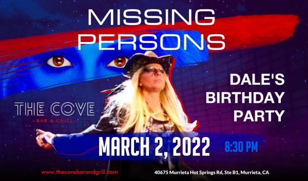 Come celebrate Dale Bozzio’s birthday party with her and the rest of Missing Persons at this very special Cove concert event. Get your tickets now as this will sell out. Destination Unknown, Walking in L.A. and Words dominated the 80s airwaves and Dale Bozzio’s signature style made her an 80’s icon. This is a one of a kind concert event you will not want to miss.